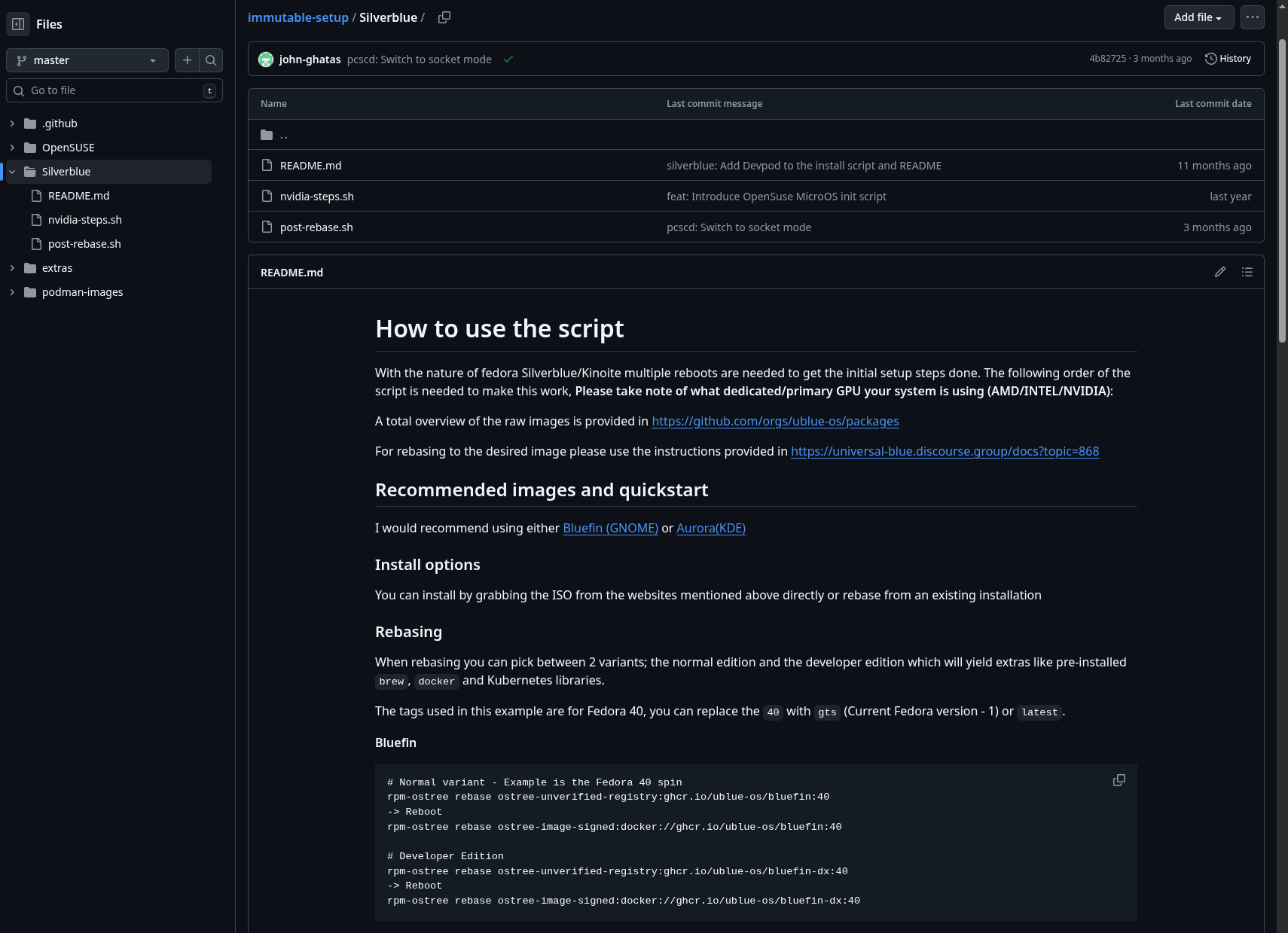 Immutable Linux RepoA set of personal scripts and containerfiles that I used to setup my equipment, mainly focused on Fedora Atomic and Distrobox made available.